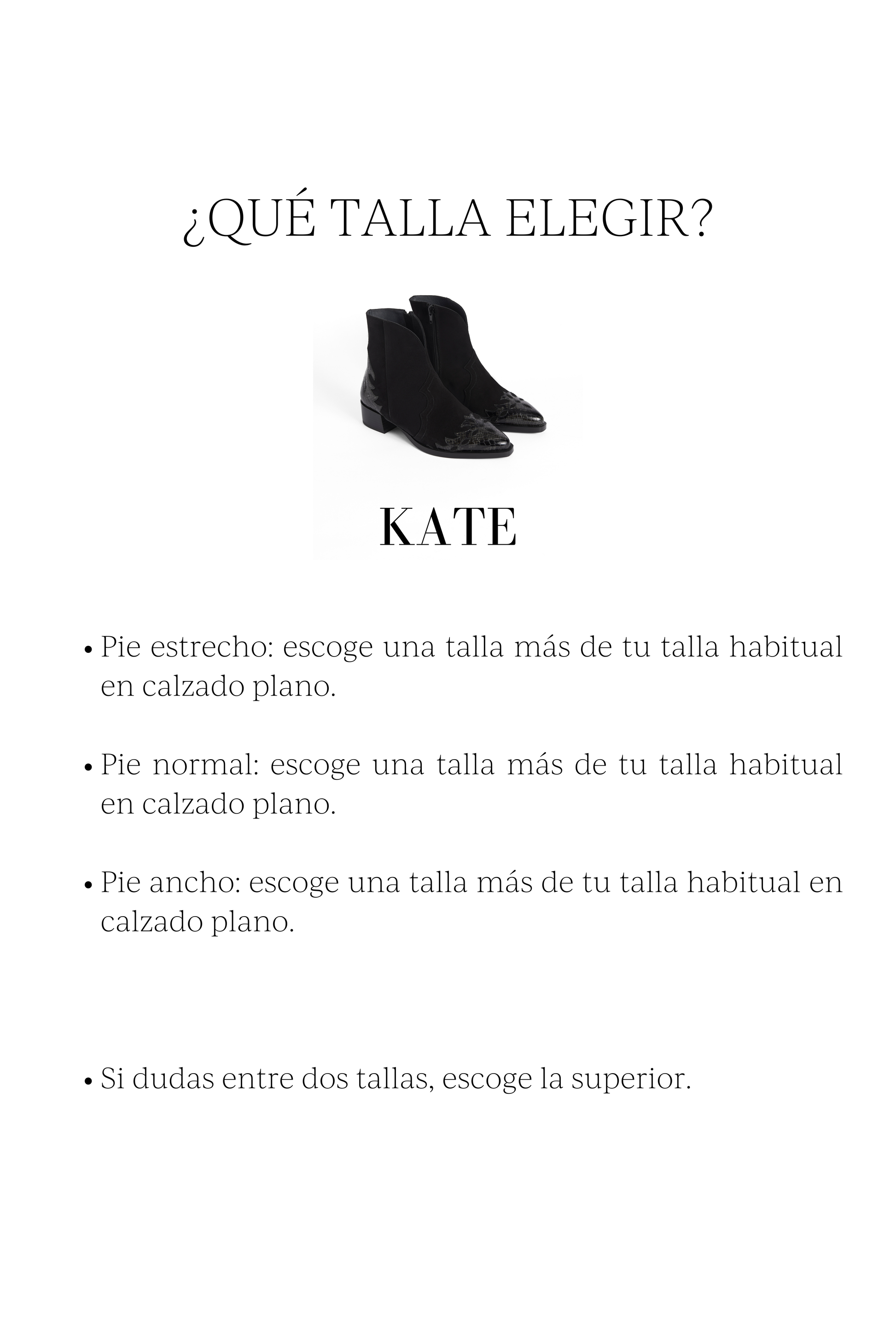 • Pie normal: escoge una talla más de tu talla habitual en calzado plano.